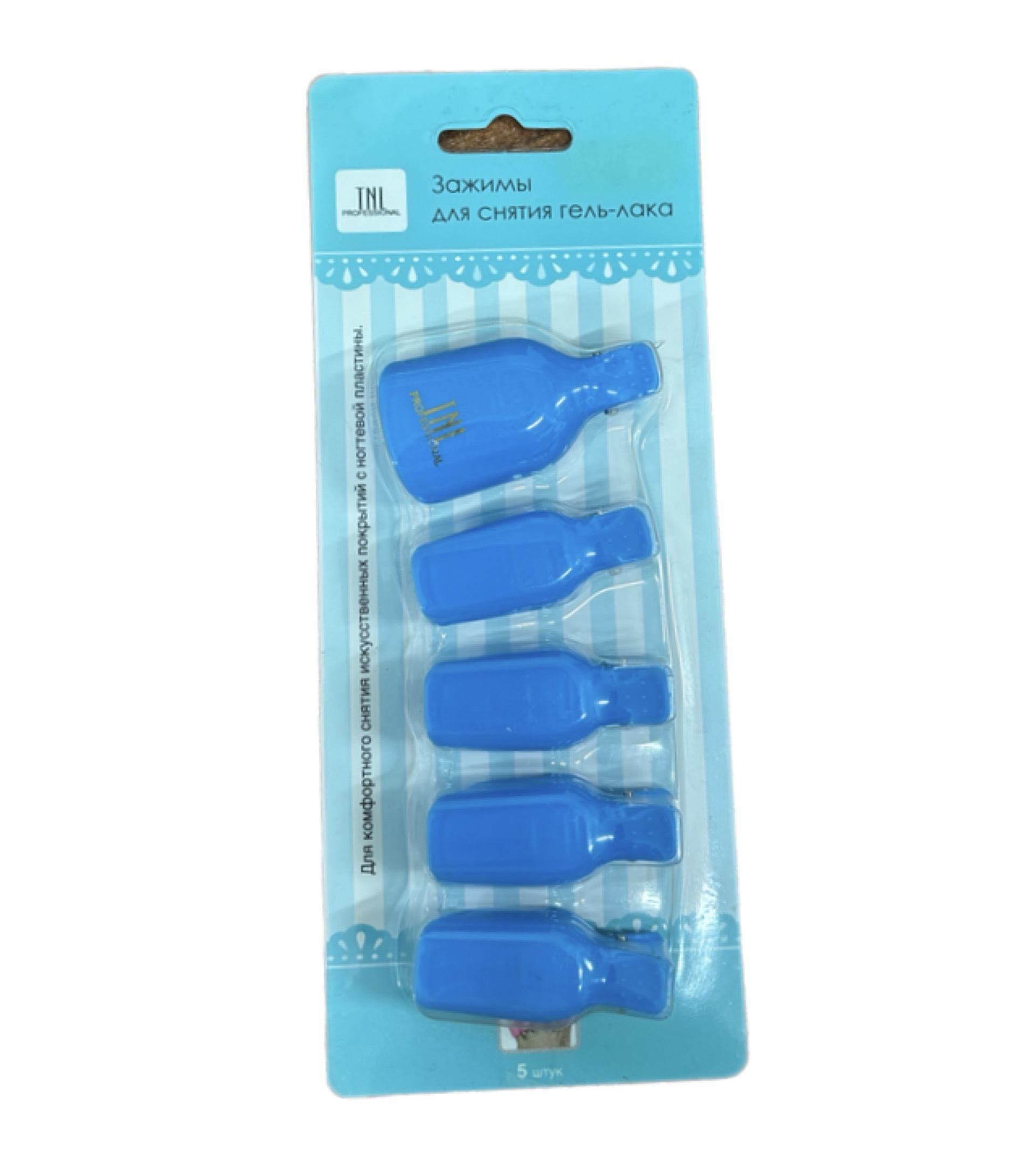 Зажимы для снятия гель-лака на ногах TNL (синие), 5 шт