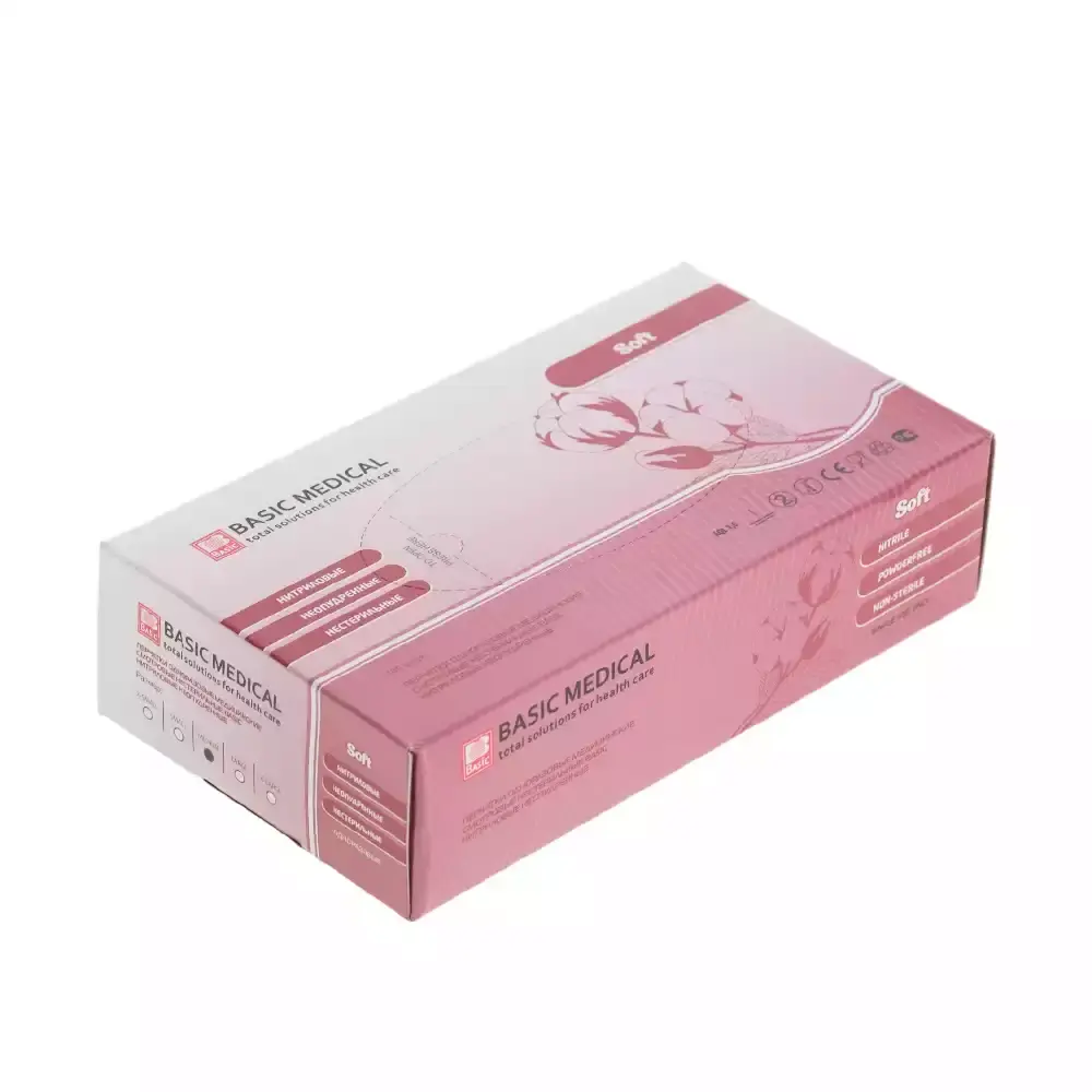 Одноразовые смотровые нитриловые неопудренные перчатки Basic Medical (розовые):