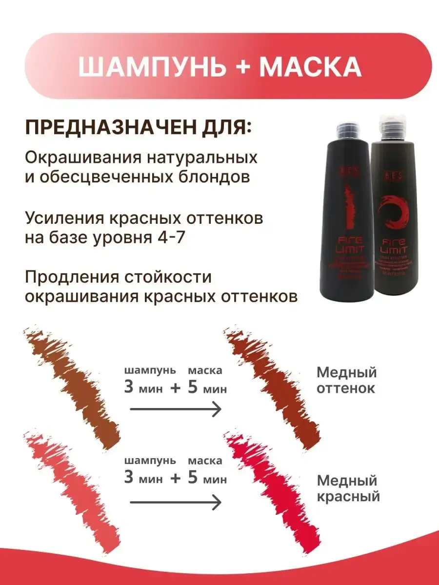 Оттеночный шампунь «Fire Limit» Color Reflection, BES используется для создания или поддержания ярких красных оттенков, а также - нейтрализации желтизны. Помогает поддерживать красно-медные оттенки или насыщенные темно-красные цвета.