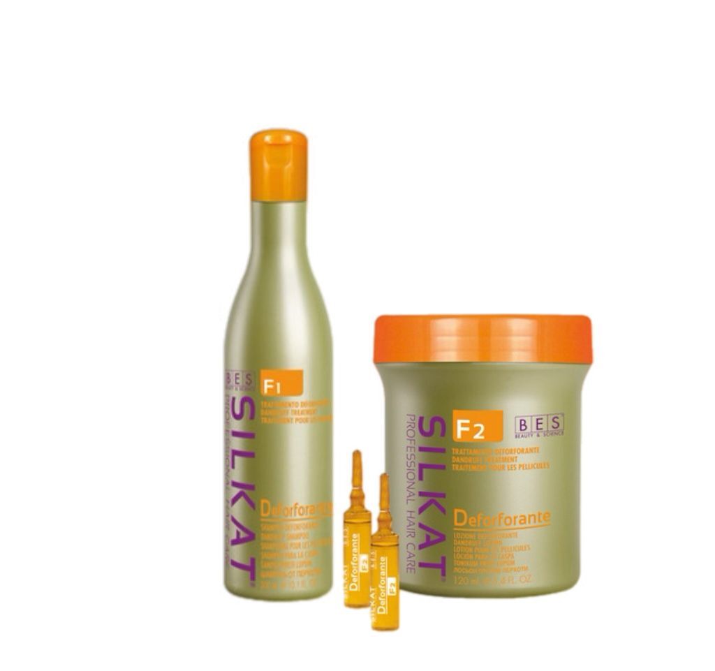 Набор против перхоти Silkat Deforforante BES (Шампунь F1, 300 мл + Лосьон F2, 12 ампул х 10 мл)
