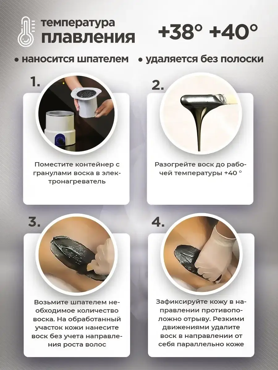 - После застывания (6-7 сек.) удалите резким движением по росту волос;
