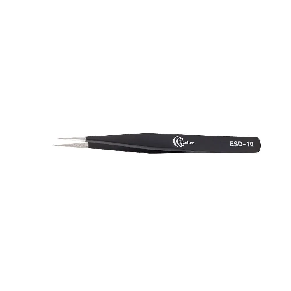 Пинцет для наращивания ESD-10 черный с острыми кончиками, CC Lashes: